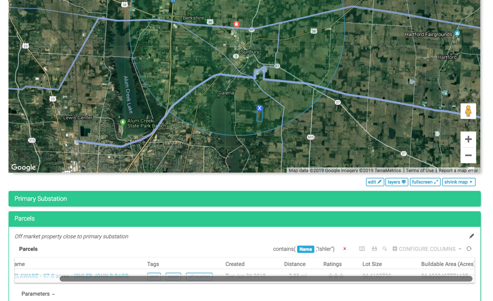 - Purpose: Allows users to see where parcels are in relation to each other and the initial substation/line
