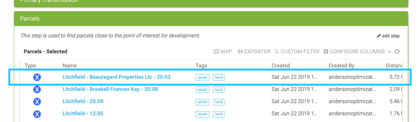 Scroll down to parcels list and expand it, choose the parcel you want to work on and click on its name.