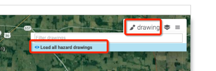 - When you return to the project, you'll need to hover the "Drawing" option and click "Load All Hazard Drawings" too see the drawings again. This helps minimize load times.