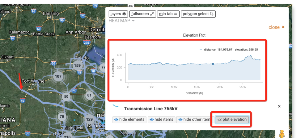 - How To: Click a line. Click plot elevation. When you hover on the chart, it will display the elevation at that distance from the line.