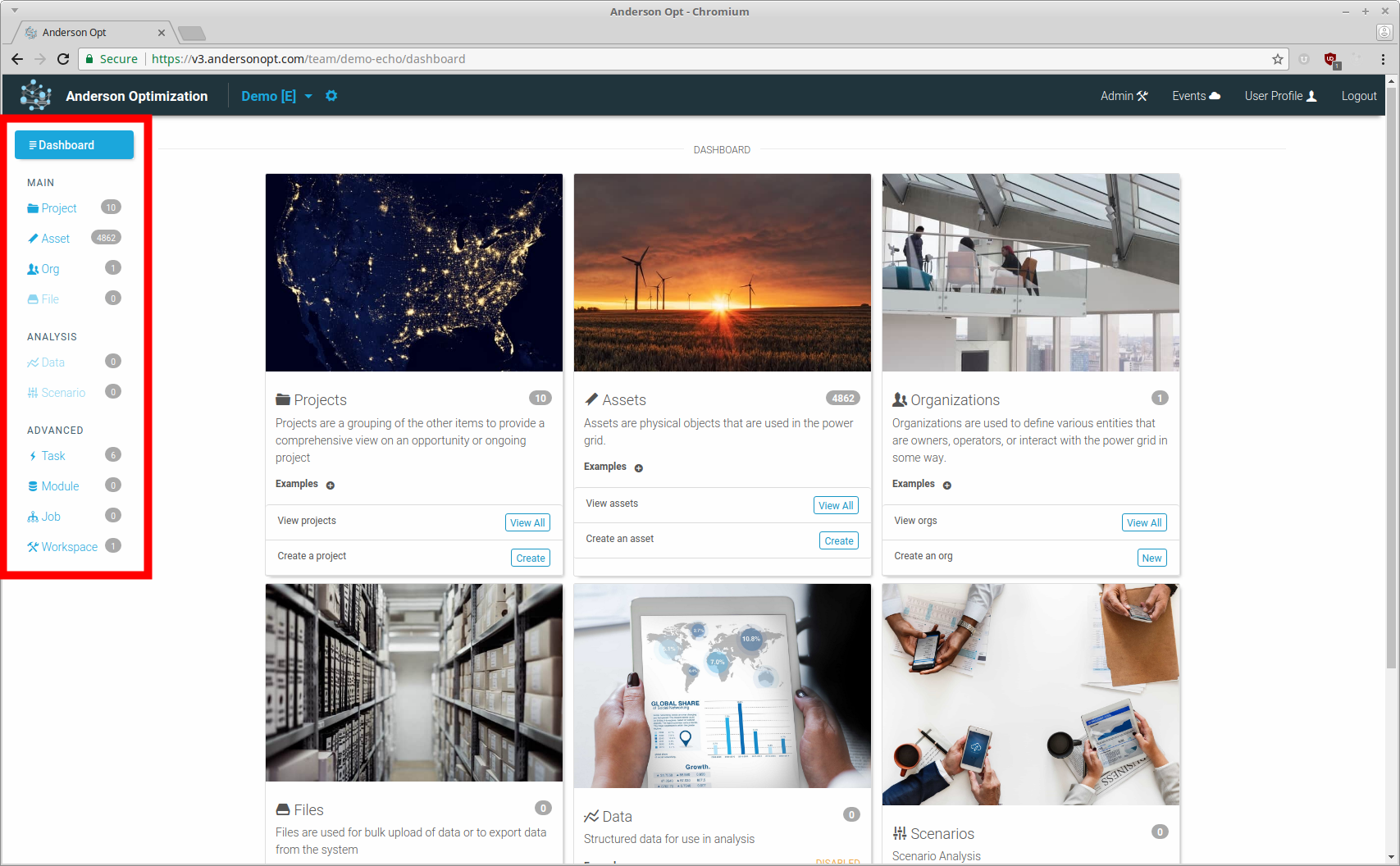 There are three categories of resources, main, analysis and advanced. The main resources are used among almost every client and for every user. Analysis resources are used in AO Site Analysis. The advanced resources are used to configure and setup the system to meet a variety of workflows.