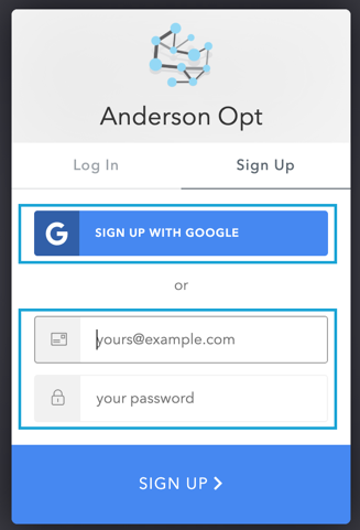 Sign up using Google - simply click on ‘Sign Up With Google’ and follow the instructions